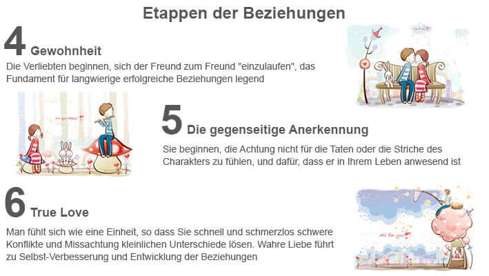 Nicht alle Paare können die letzte Phase einer Beziehung erreichen. Aber seien Sie versichert: mit einem Menschen, der Ihr Schicksal ist, werden Sie in der Lage, den Weg bis zum Ende zu überwinden und eine harmonische glückliche Beziehung aufzubauen.